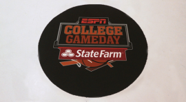 DetailsThe Challenge to create one 8 foot round and three 48 inch round carpets for ESPN’s College Game Day with sponsor State Farm Insurance for an event being held in Ames, Iowa in just a 48 hour period of time from the initial order to shipping with a fabric edging.