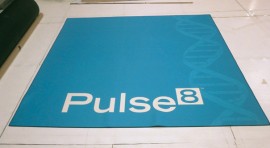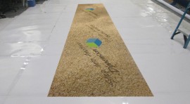 DetailsThe challenge was to make a 16 oz. 8 foot by 10 ft. carpet that was dye-sublimated printed in full color with different solid colors in the four quadrants of the carpet and then cut the carpet along the solid colors into four different die-cut 4 ft. by 5 ft. sections that could be used as a stand-alone piece or could be combined together for a team-building exercise.