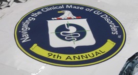 DetailsThe challenge: To create a 15 ft. diameter, circular carpet from two dye-sublimated printed pieces that are 10 ft. x 16 ft. and when trimmed, to make it look like a one piece carpet that is a heavy blue color with a yellow border and white knock out type. The carpet was for the 9th Annual Meeting of Navigating the Clinical Maze of GI Disorders held at the Marriott Hotel in Washington DC.